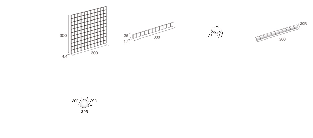 昭和テイストあふれる定番モザイクタイル。色数も役物も充実。「使える」タイルです。